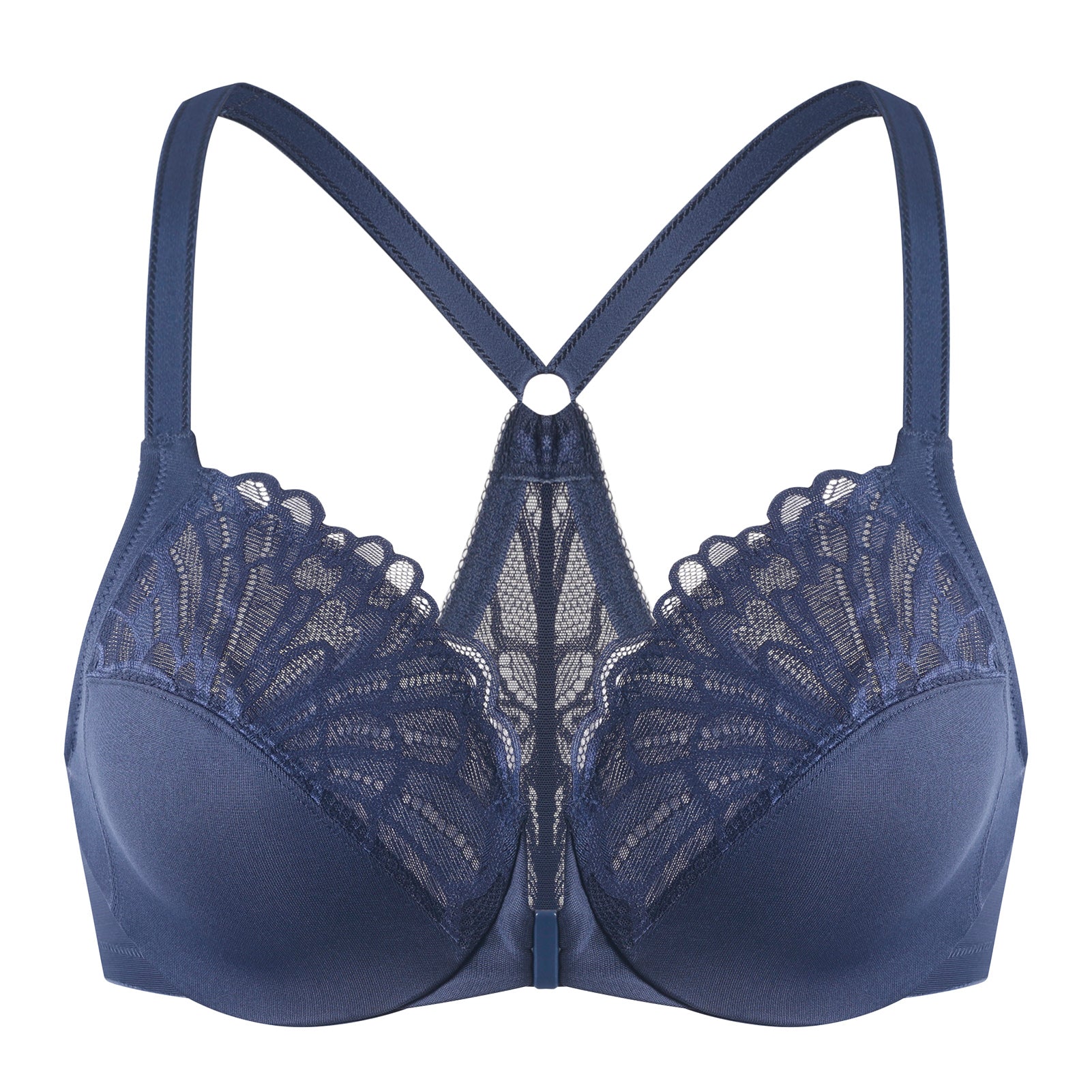MELENECA Women's Racerback Front Closure Full Coverage Unlined Plus Size Underwire Bra Blue