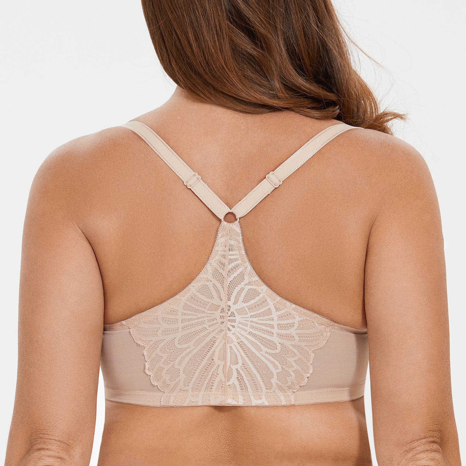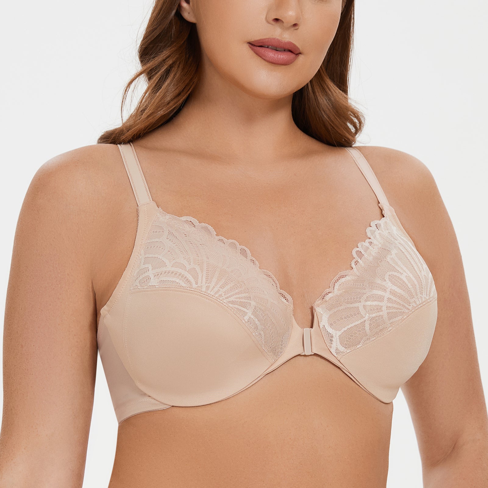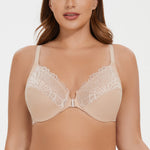 MELENECA Women's Racerback Front Closure Full Coverage Unlined Plus Size Underwire Bra Pale Nude