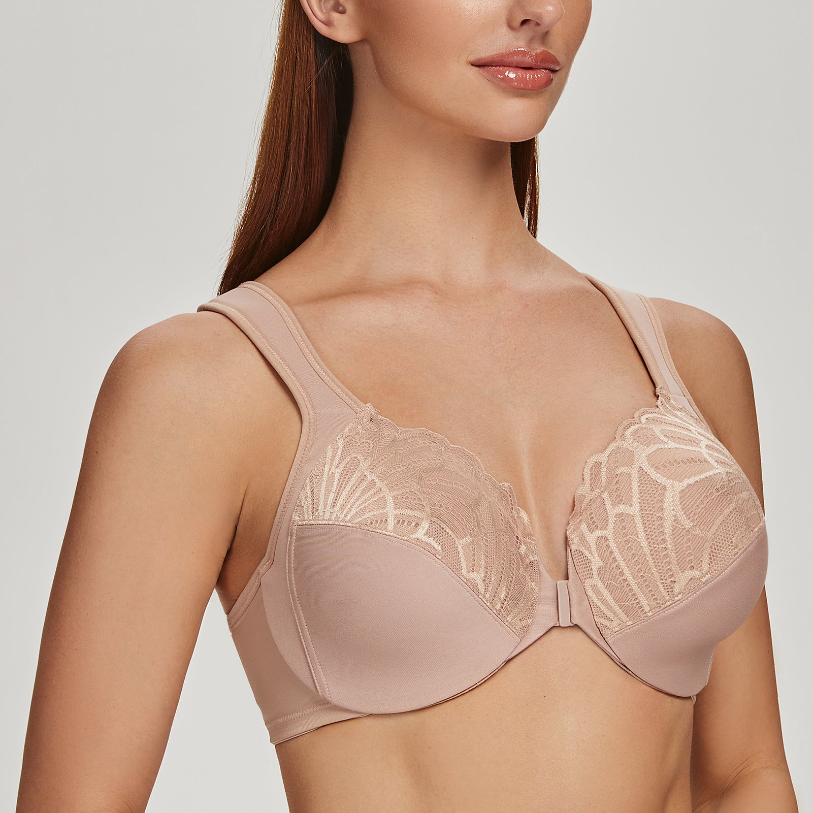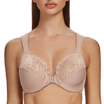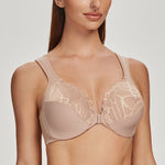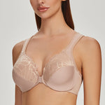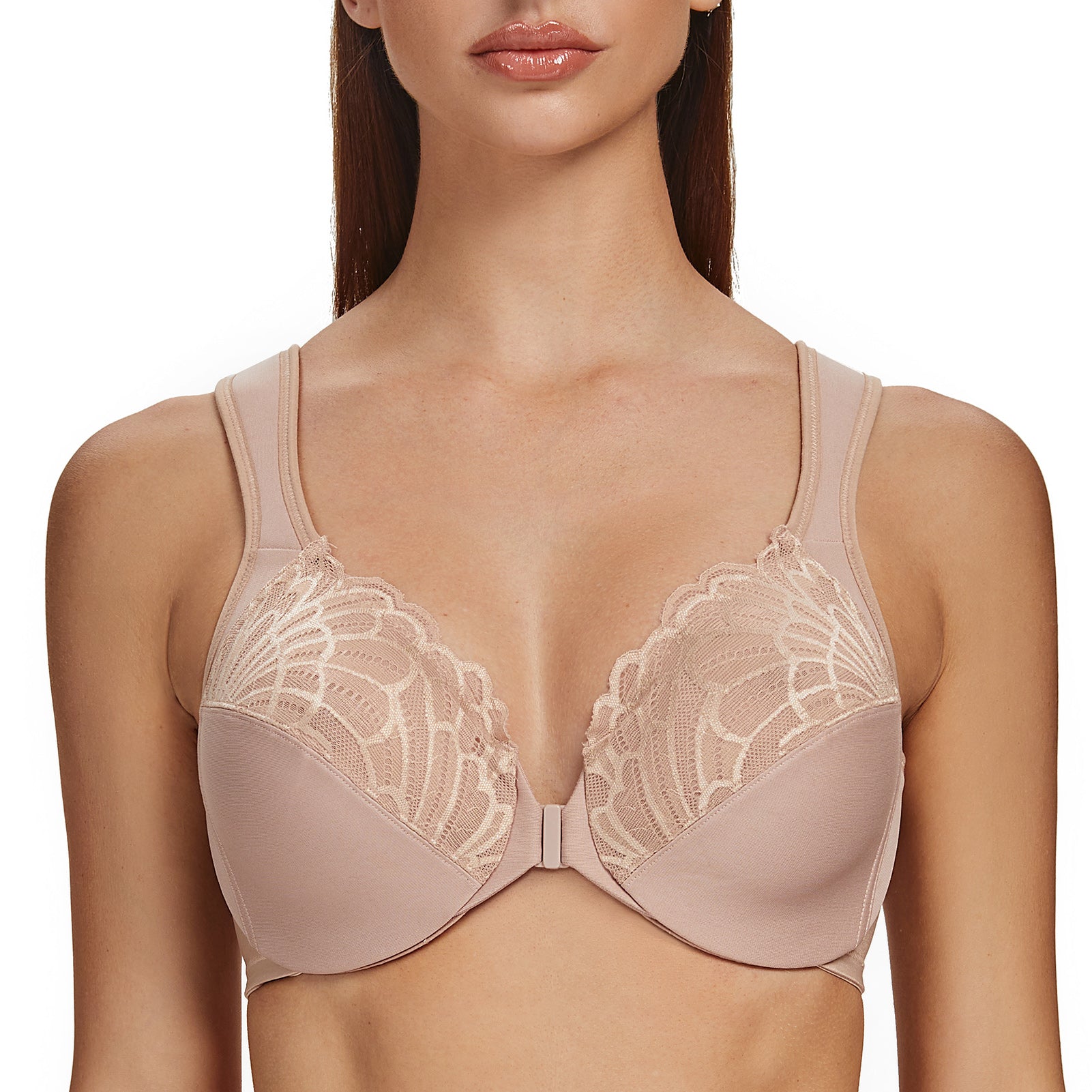 MELENECA Front Closure Bras for Women Plus Size Underwire Unlined Lace Cup Cushion Strap Beige