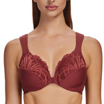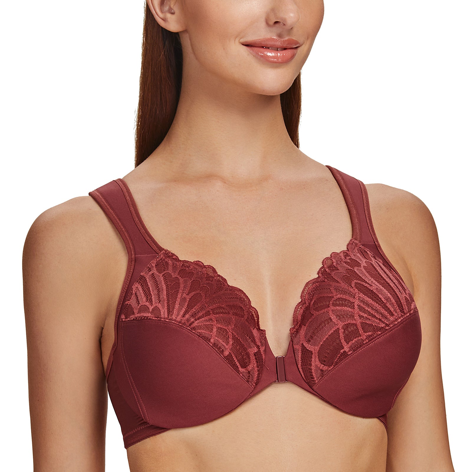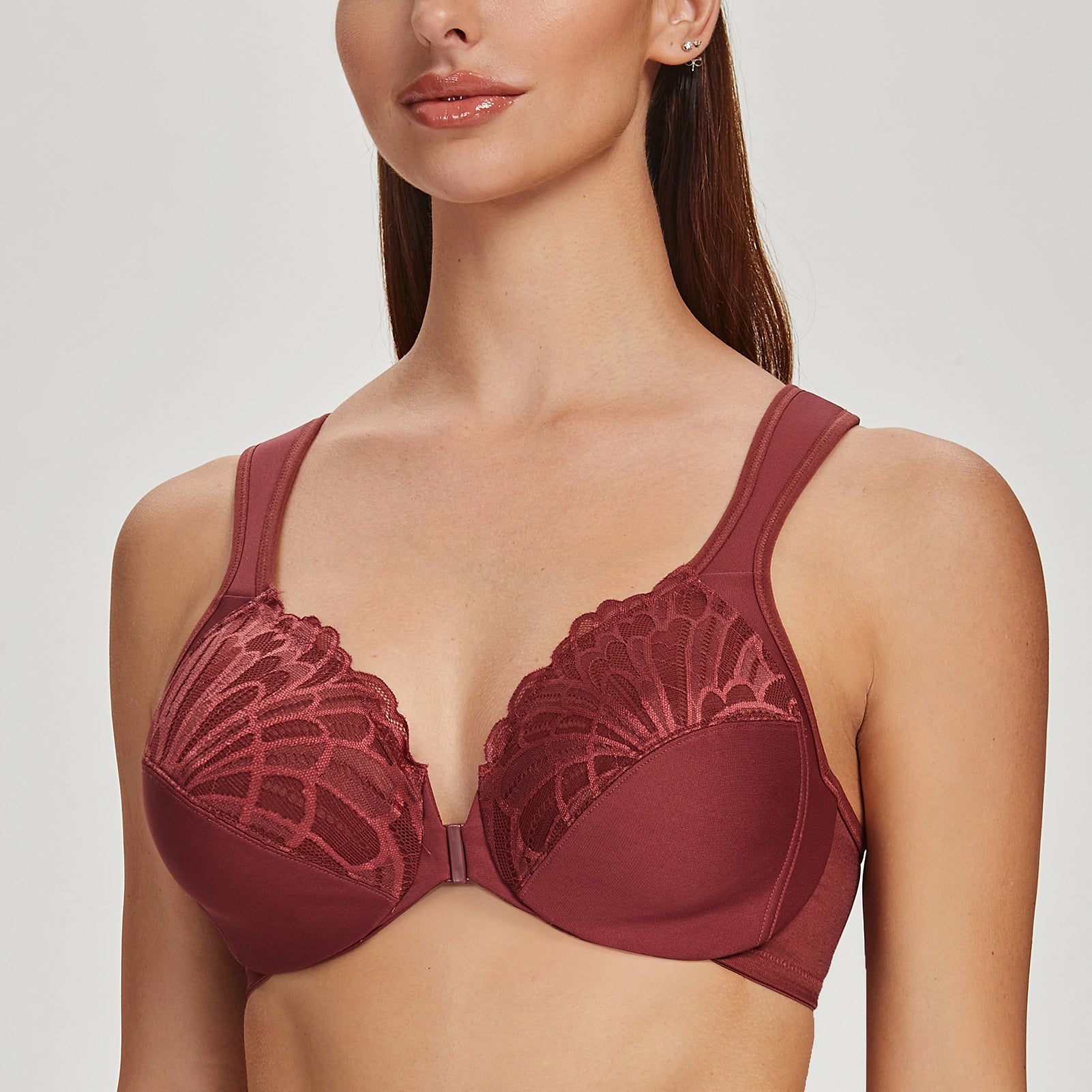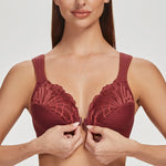 MELENECA Front Closure Bras for Women Plus Size Underwire Unlined Lace Cup Cushion Strap Cabernet Red