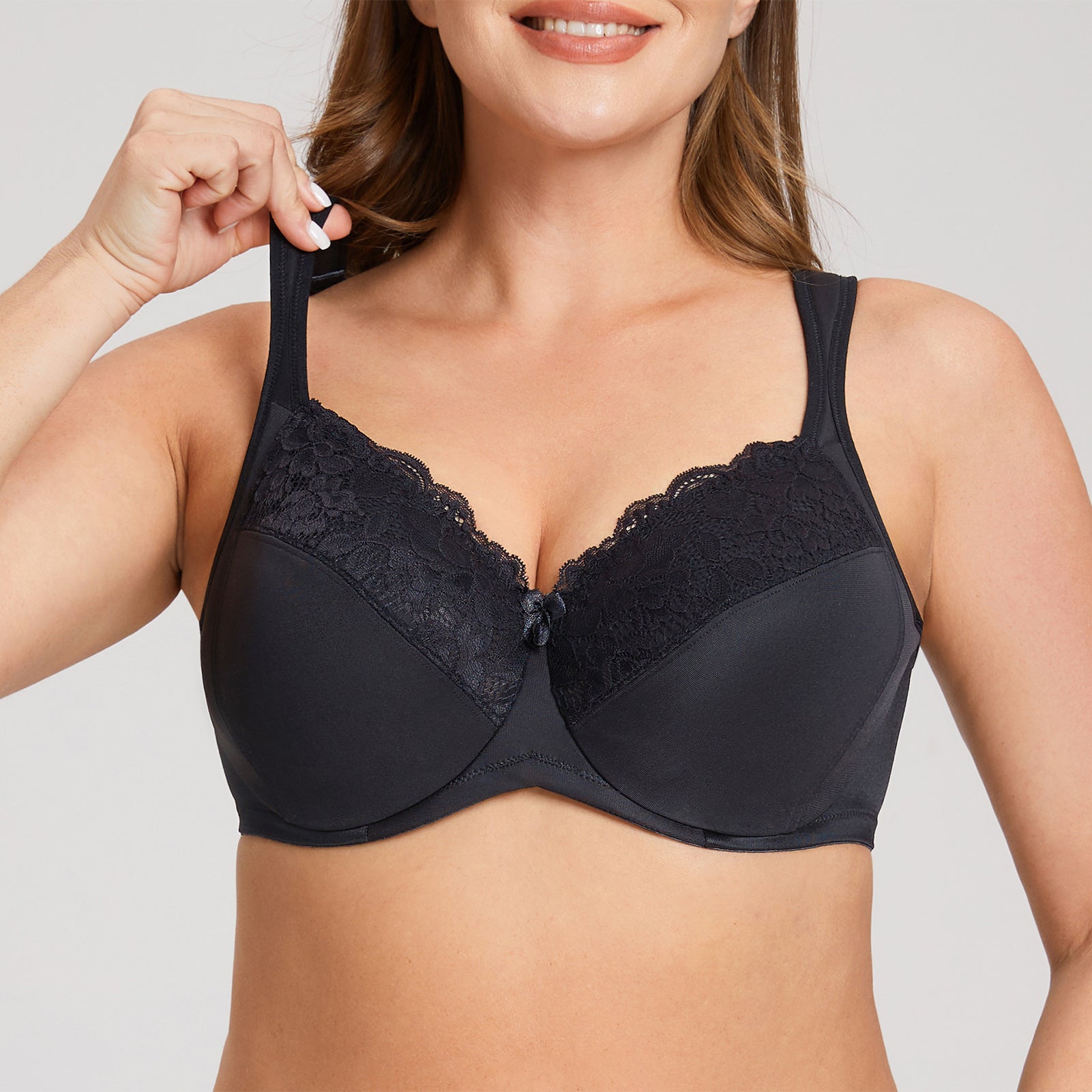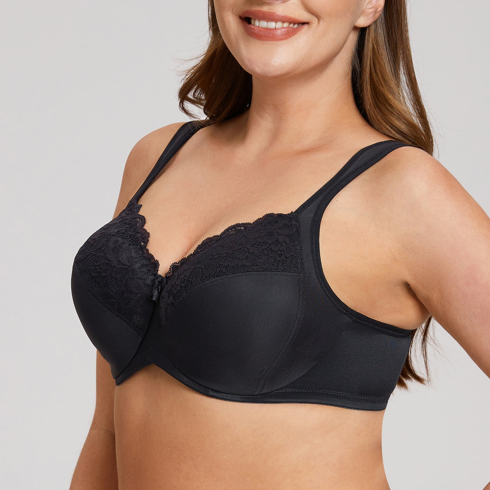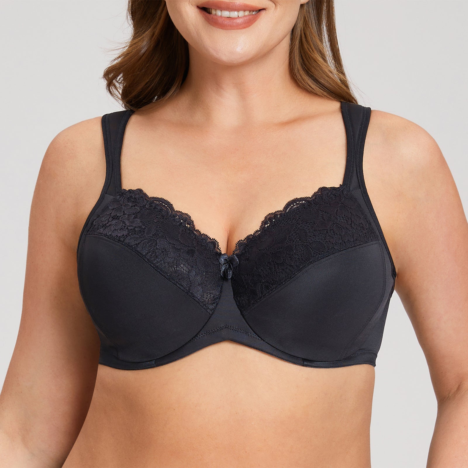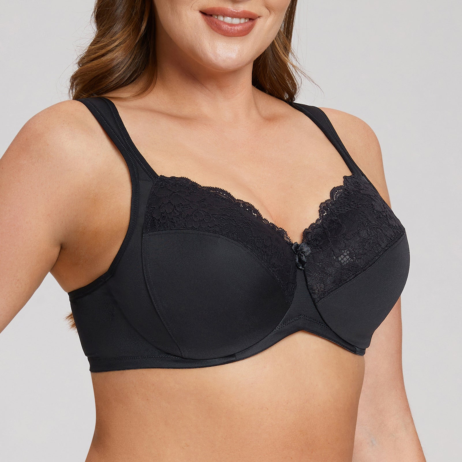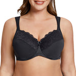 MELENECA Women's Full Coverage Underwire Bra Minimizer Plus Size Lace Comfortable Cushion Strap Black