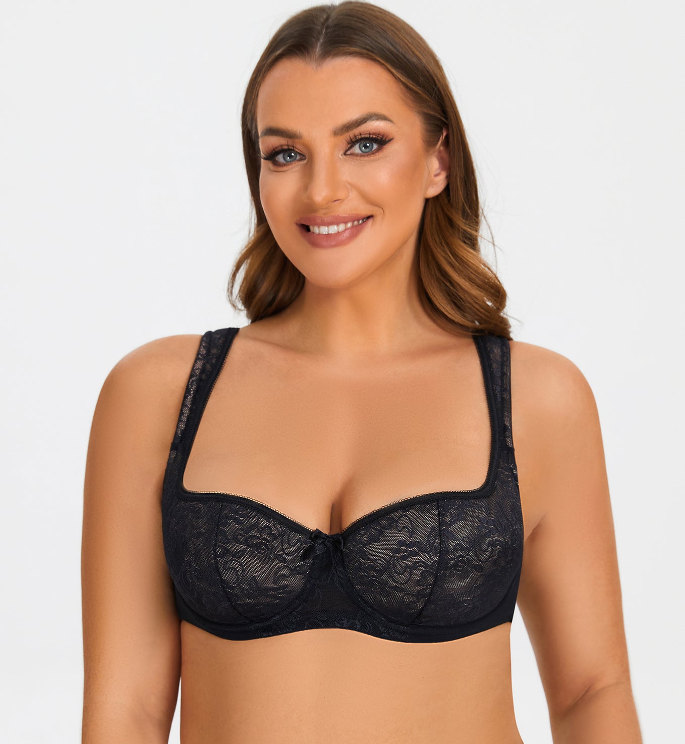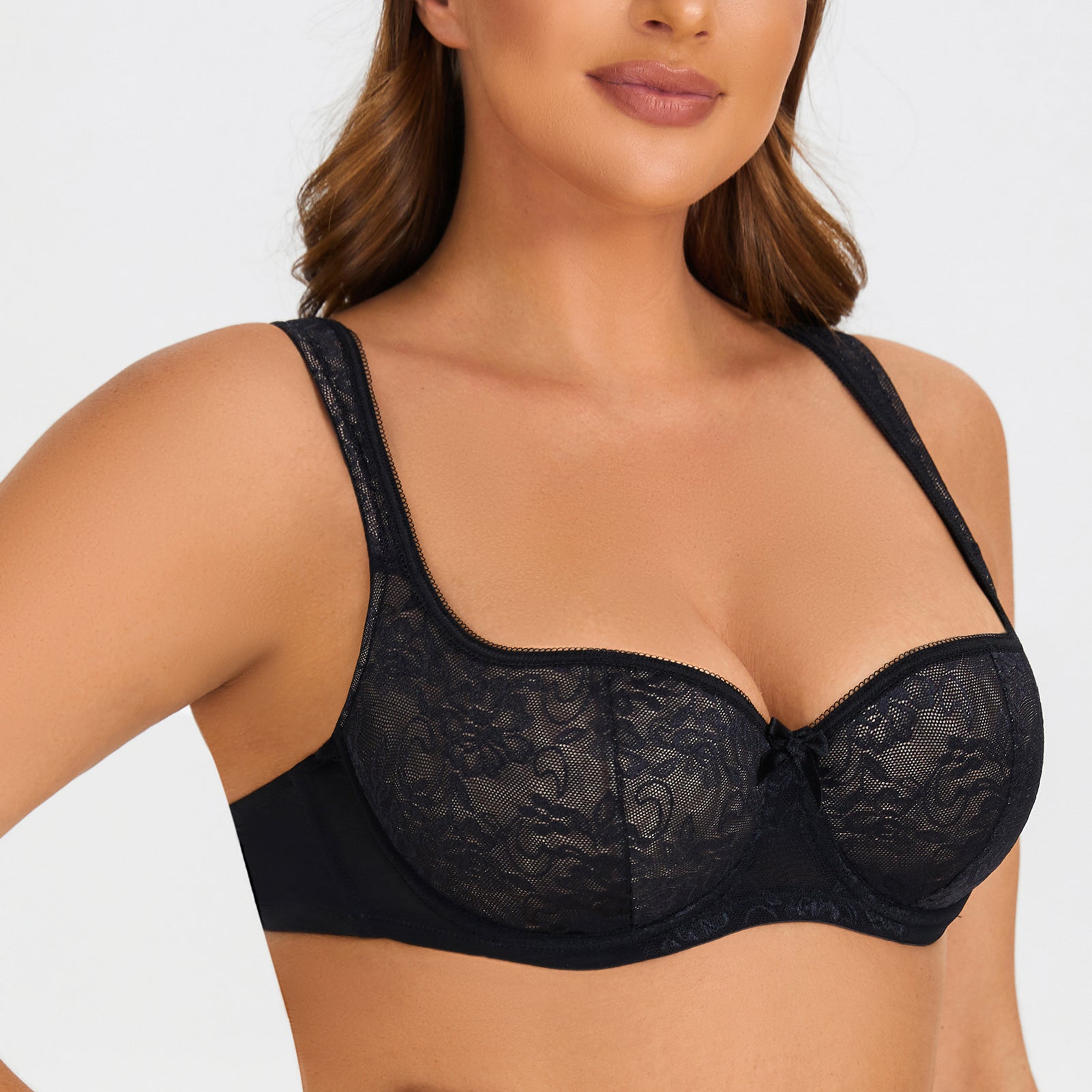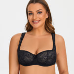 90% polyamide,10% Spandex<br/>Balconette-style padded bra with beautiful laceLightly padded cups provides natural round shapeAdjustable padded straps for all-day comfortUnderwire designed to provide great supportThe two-part cup silhouette lifts breasts giving a rounded bust and abundant cleavage