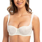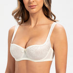 MELENECA Women's Balconette Bra with Padded Strap Half Cup Underwire Sexy Lace Off White