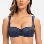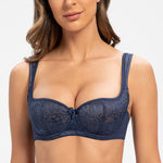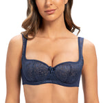 MELENECA Women's Balconette Bra with Padded Strap Half Cup Underwire Sexy Lace Blue