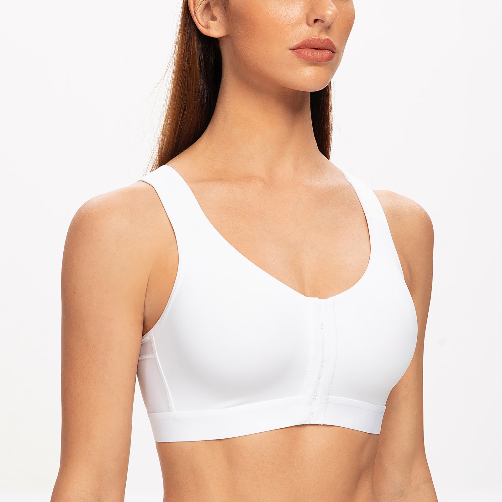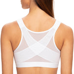 MELENECA Women's Front Closure Wirefree Post Surgery Plus Size Back Support Posture Bra White