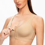 MELENECA Women's Front Closure Wirefree Post Surgery Plus Size Back Support Posture Bra Almond