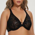 90%Nylon,10%Spandex<br/>Stretch sheer lace cups give you a natural shape and lace lies flat for an invisible look under clothes.Underwire features a fiberfill cushioned for comfort and supportStretch lace cups have sewn-on elastic at the neckline edge to contain large bust.Straps are set in closer at back to keep them from slipping off the shoulders.Wide front straps do not stretch and connect to adjustable elastic straps in back.Please Note:Model is wearing nipple covers for modesty.Care: Hand wash cold. Non-chlorine bleach when needed. Line dry.