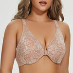 MELENECA Women's Front Closure Plus Size Racerback Stretch Lace Underwire Bra Beige