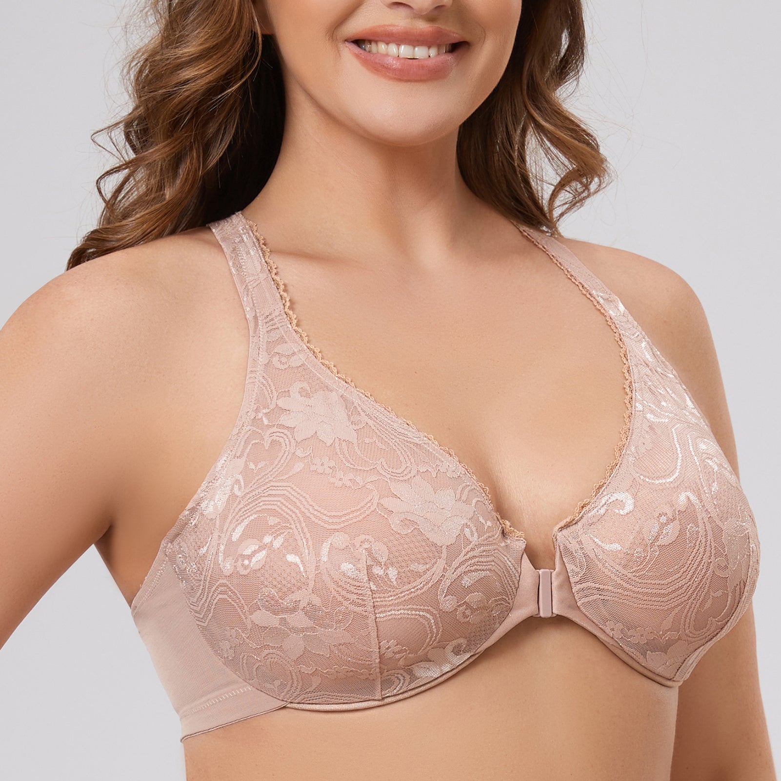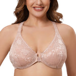 Discover the perfect blend of style and comfort with our beautiful stretch lace front-close leisure bra, designed specifically for plus sizes. The stretch lace adds an extra touch of elegance to your daily wear.