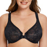 90% Polyamide,10% Elastane<br/>Easily wear and remove with its convenient front close feature, making getting dressed easyElevate your curves with the underwire design, offering the perfect support and contouring. Experience a fit that complements your natural shape.Enjoy a touch of elegance with the unlined cups featuring beautiful sheer lace, perfect for everyday wear.Supportive cushioned wide inner band built into stretch lace cups,offering more supportVisually reduce back bulge with wide, smoothing back wings,creating a sleek, smooth look under clothes