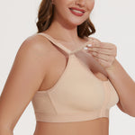 MELENECA Women's Front Closure Wirefree Post Surgery Plus Size Back Support Posture Bra Beige