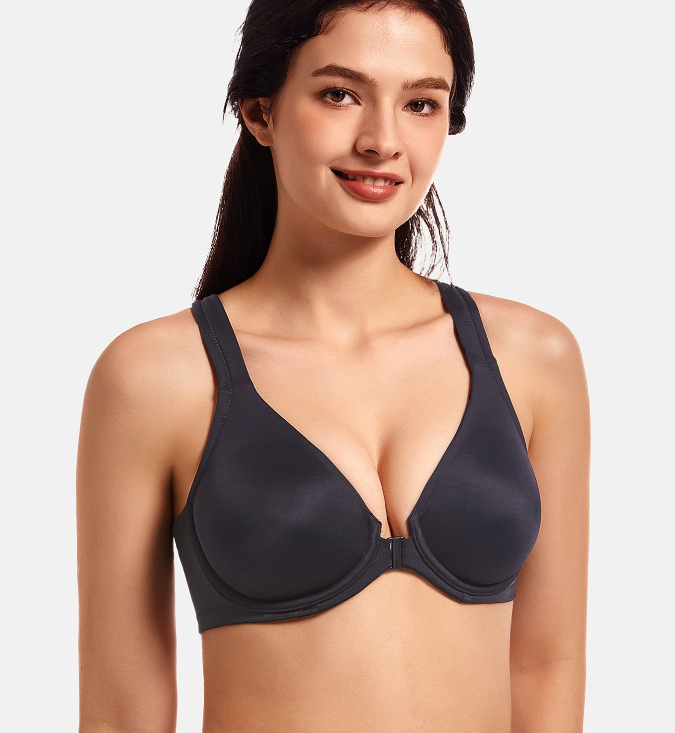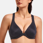 MELENECA Women's Racerback Front Closure Bras Plunge Unlined Full Coverage Seamless Underwire Bra Black