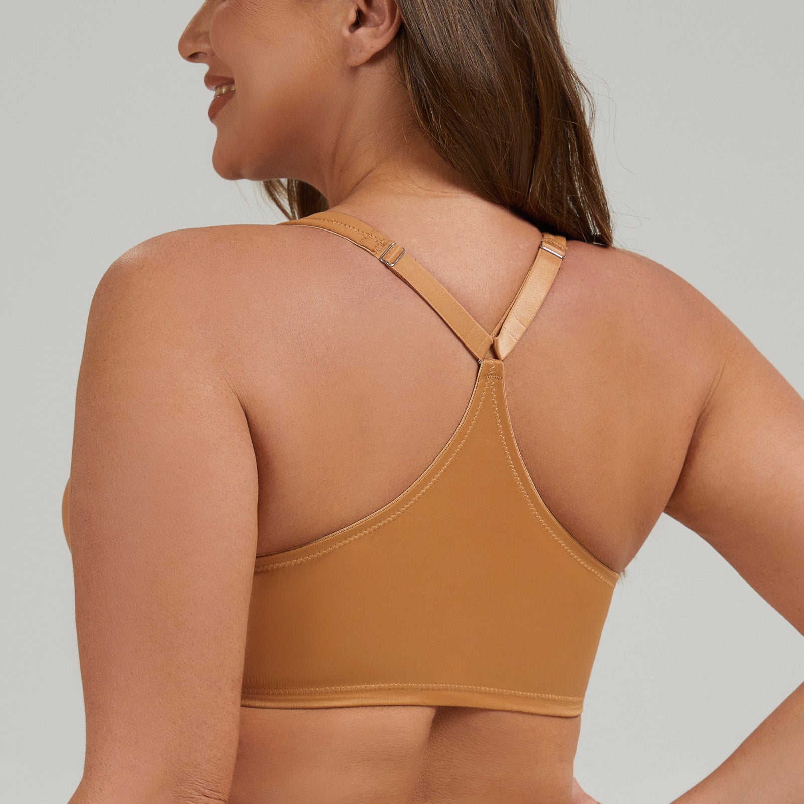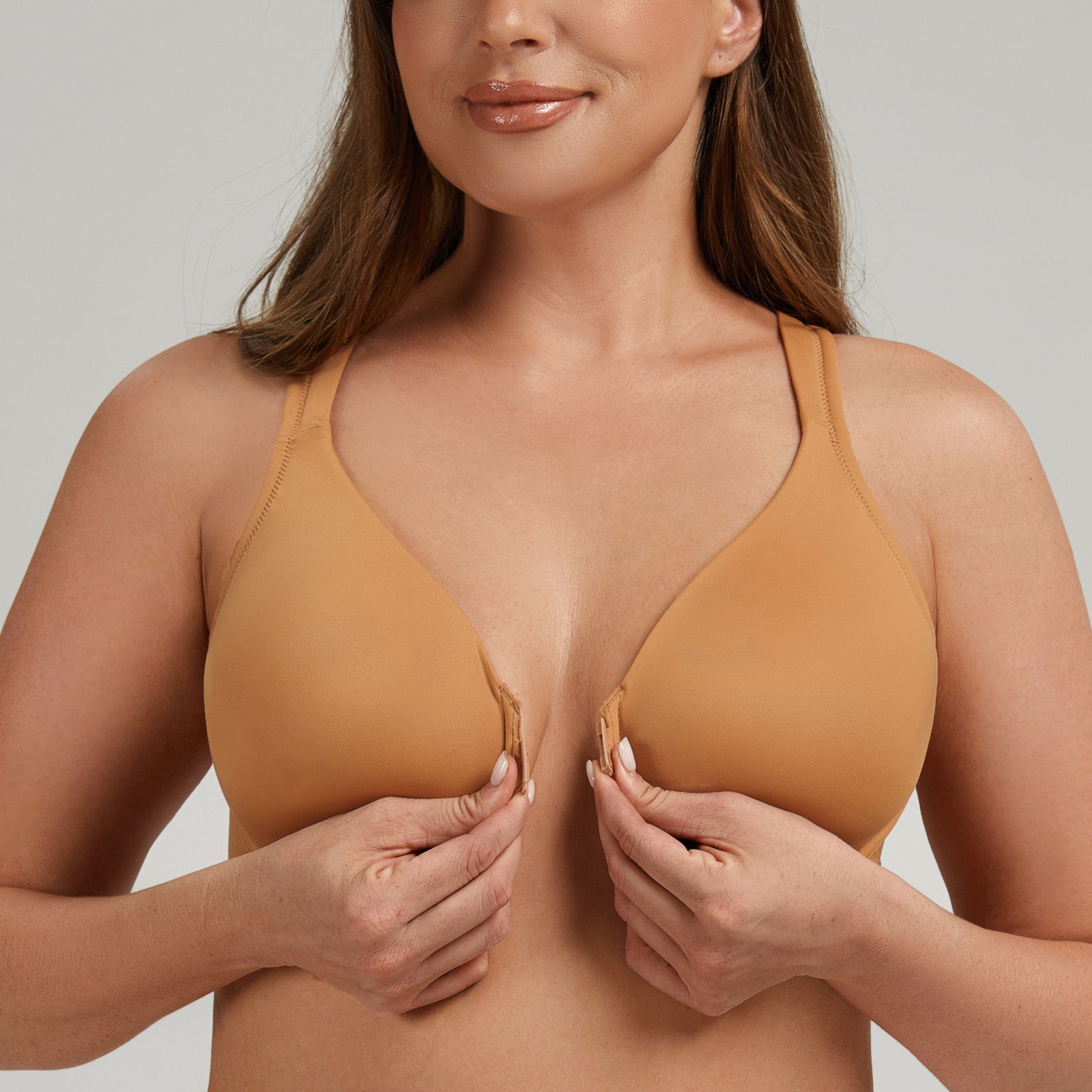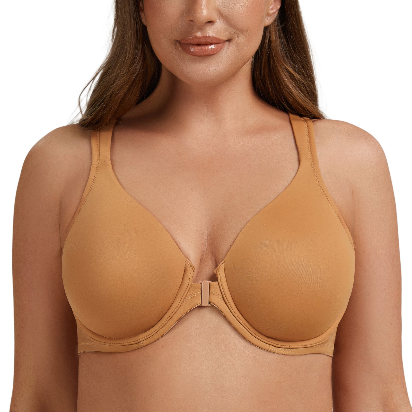 MELENECA Women's Racerback Front Closure Bras Plunge Unlined Full Coverage Seamless Underwire Bra Taupe