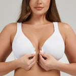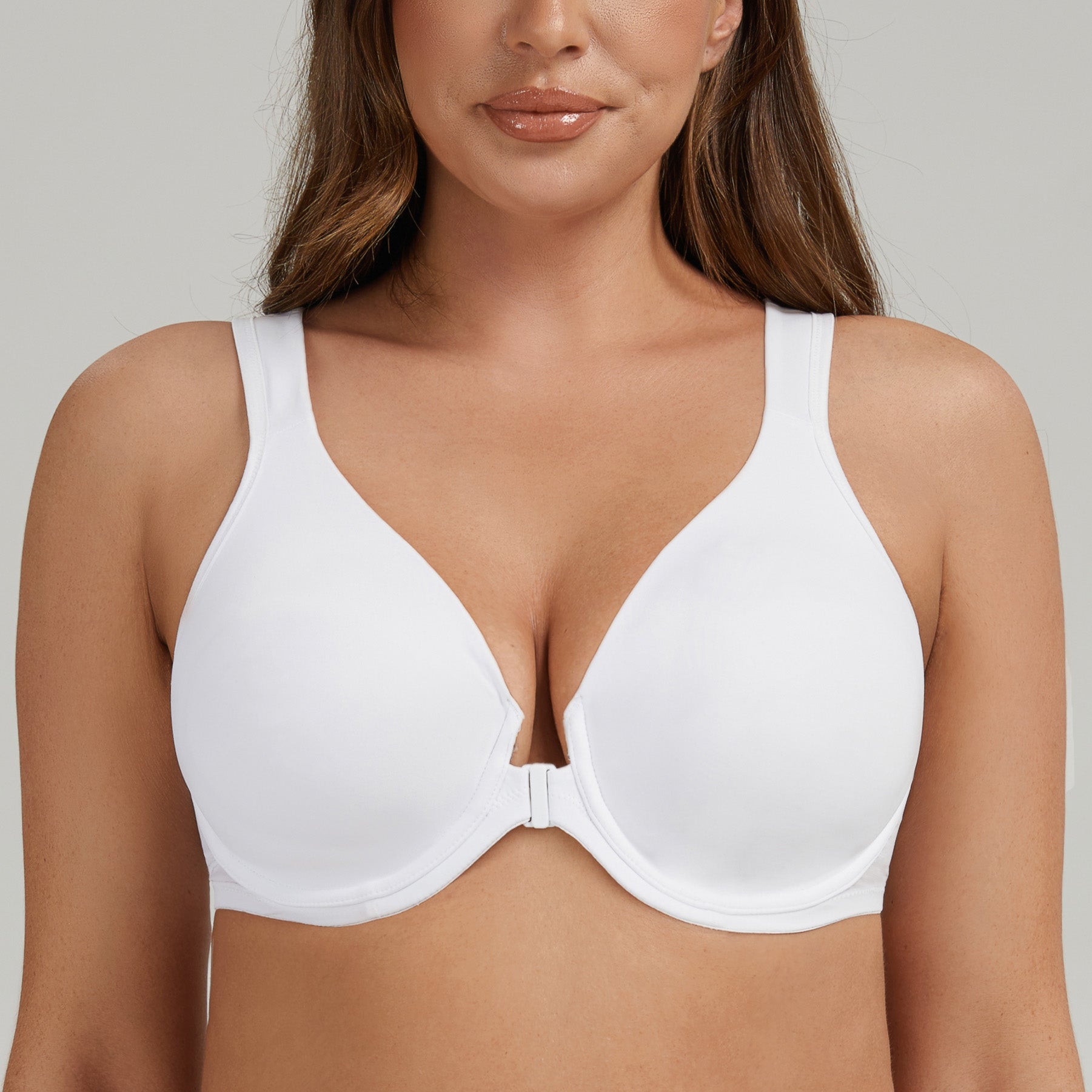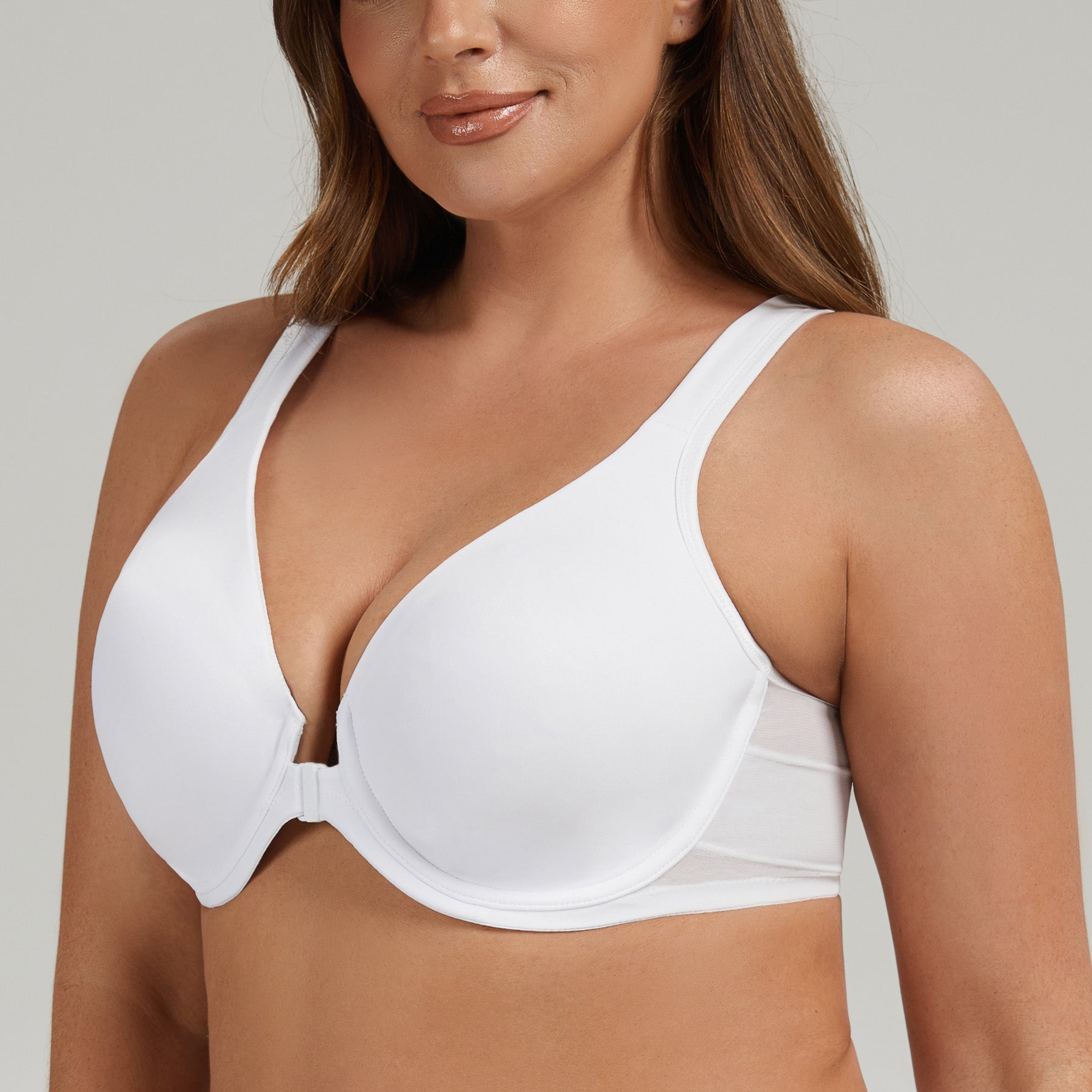 81% Polyamide, 19% Elastane<br/>Front close bras for easy on and offSupportive X-shape back for extra back support and straight postureNo padding full coverage cups avoid spillagePlunge neckline with seamless cups is easy to match dressesUnderwire provides support and lift even for large bust