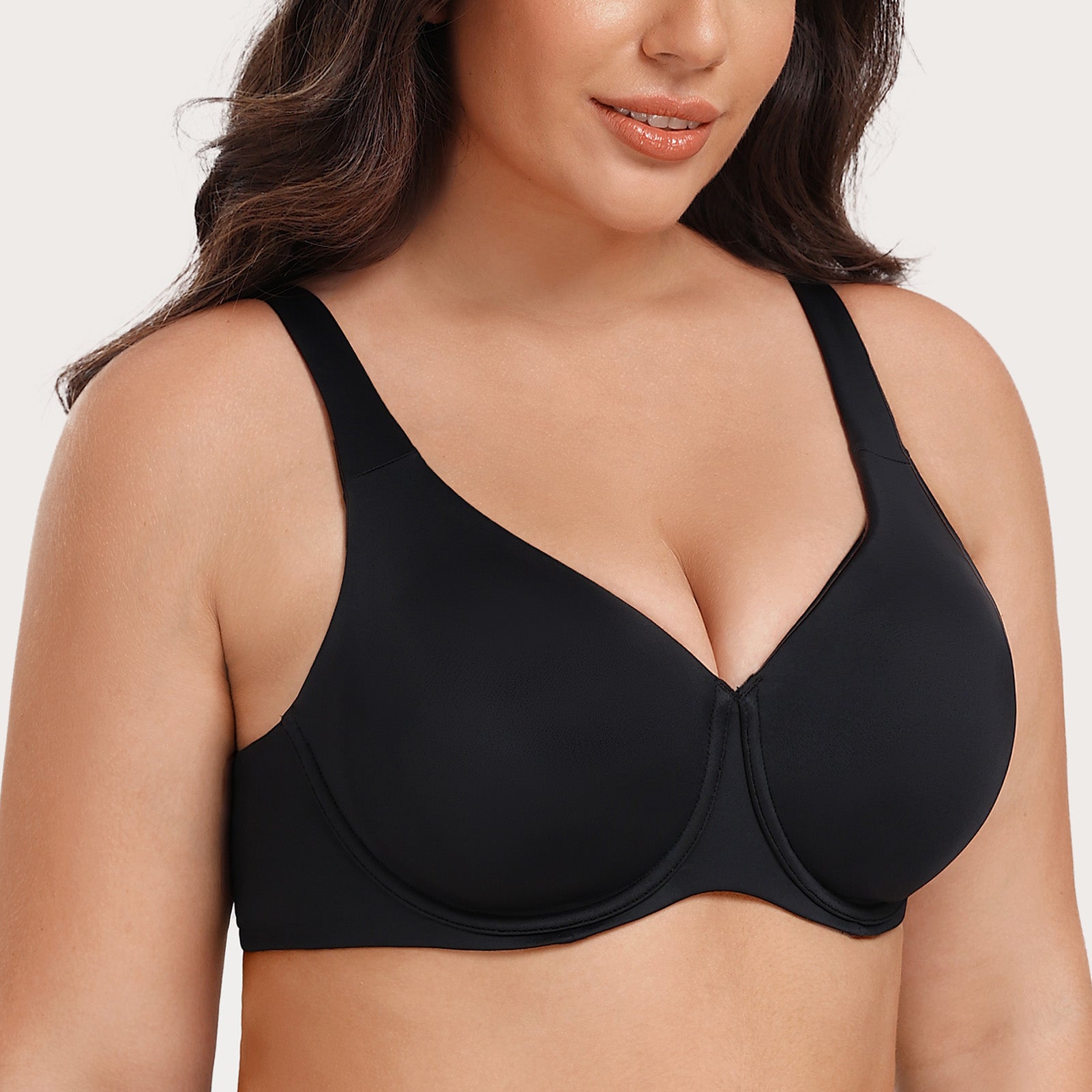 81% Polyamide,19% Elastane<br/>Underwire offers great support for bustMinimizing unlined cups give a slenderizing lookAdjustable wide straps for extra comfort and lift upSeamless double-layered fabric for a smooth profile under clothesFull figure bra design prevents spillage
