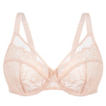90% Polyamide,10% Elastane<br/>Underwire offers great support for large breastMinimizing unlined cups minimize the volume of your bustNon-slip adjustable straps and hook and eye closure for individual fitNo padding cups feature sheer mesh and floral lace highlight your sexy curvesFull figure bra design prevents spillage