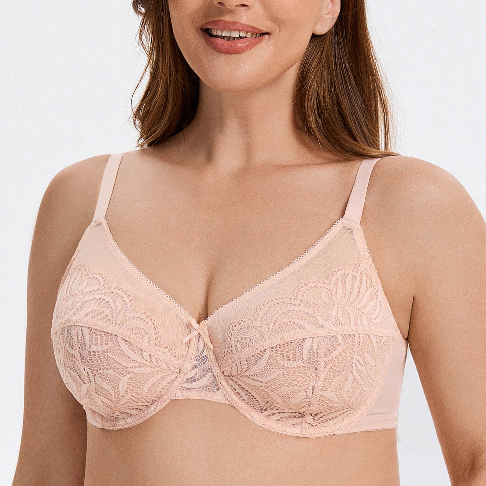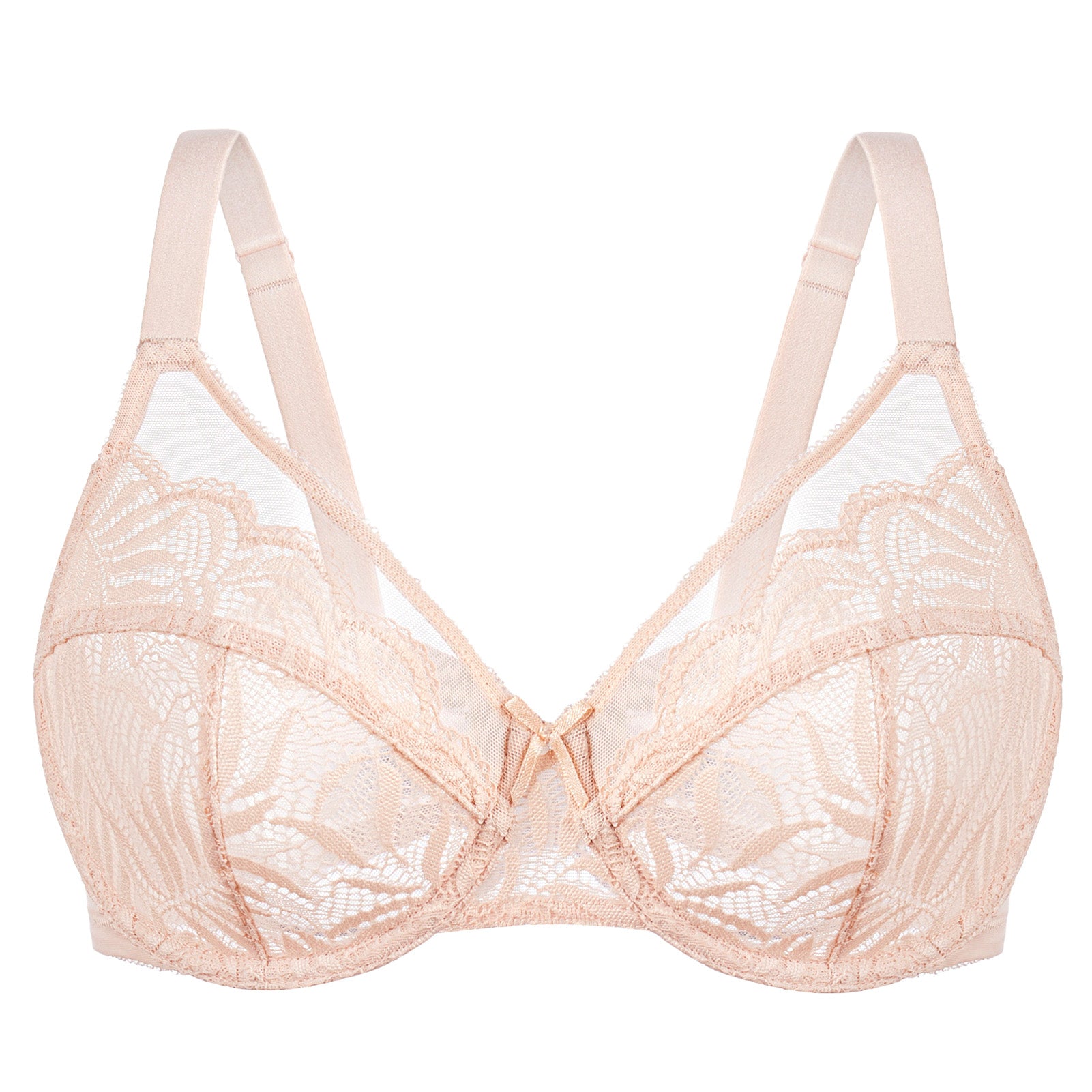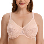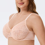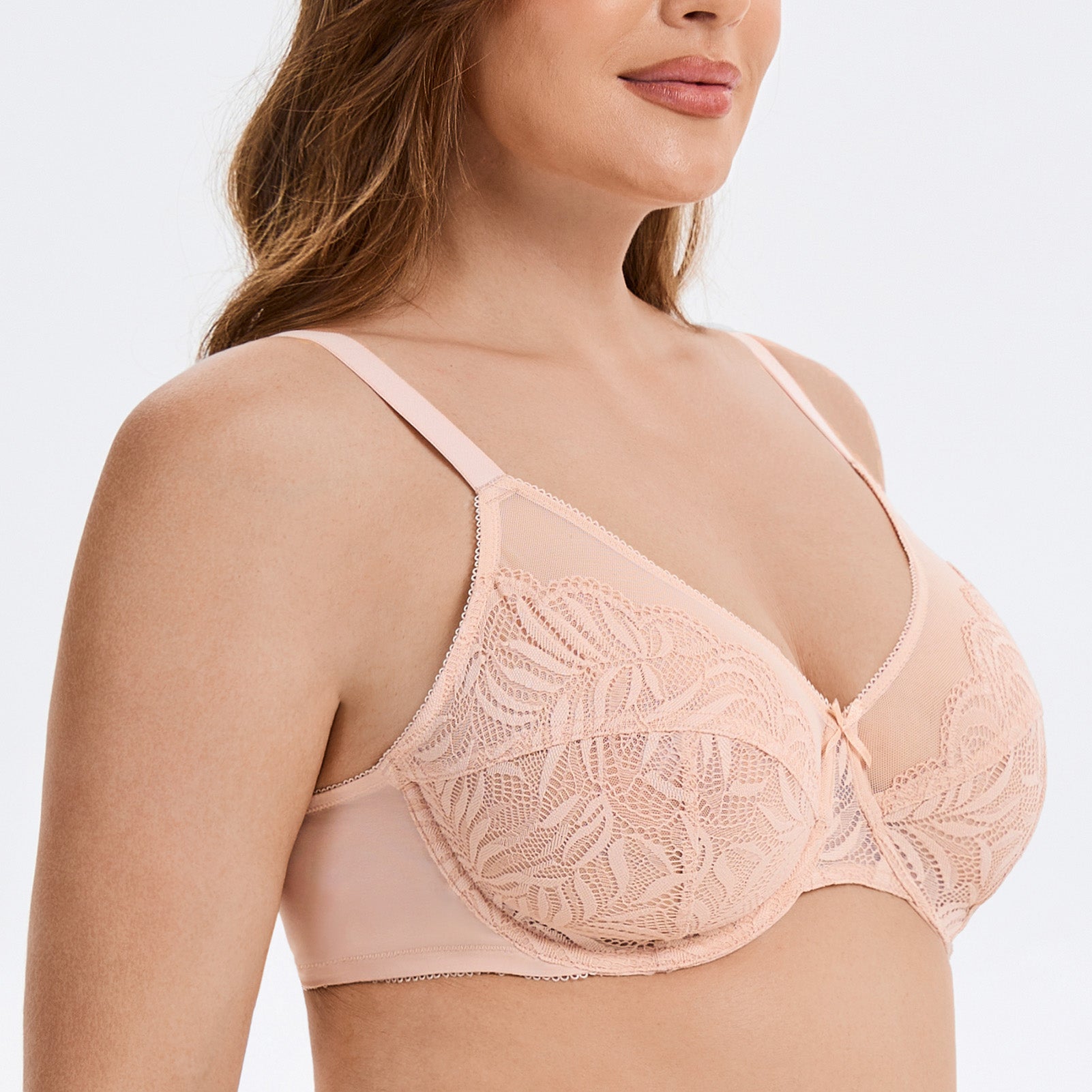 MELENECA Women's Minimizer Bras for Large Bust Underwire Plus Size Full Coverage Lace Bras Beige