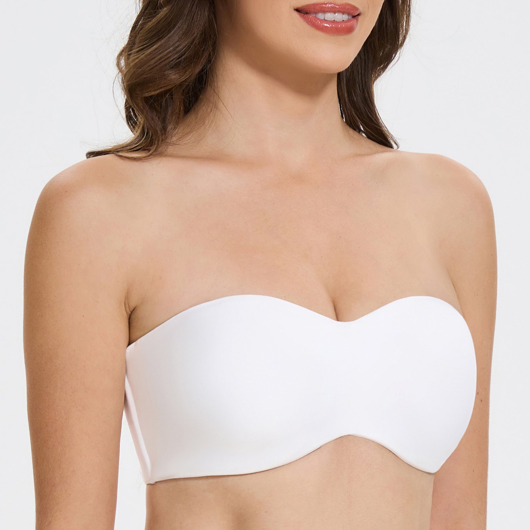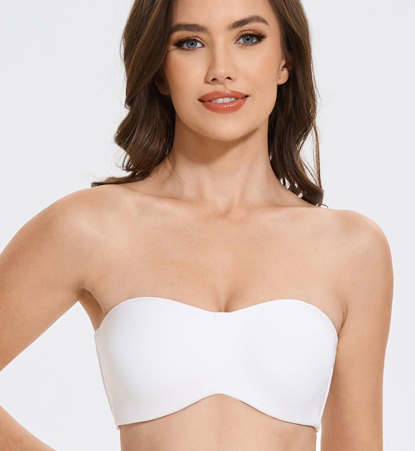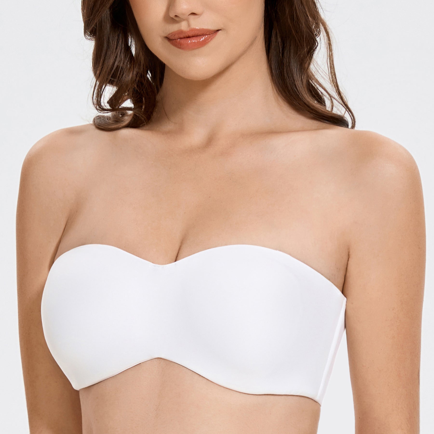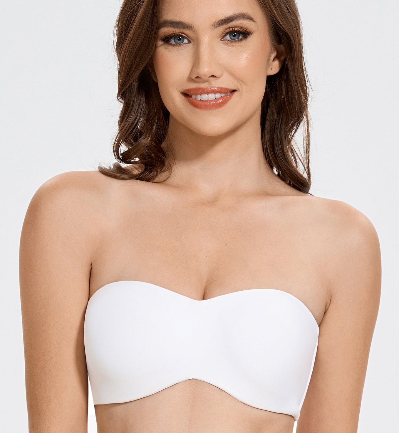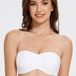 MELENECA Women's Strapless Bra for Large Bust Minimizer Unlined Bandeau with Underwire White