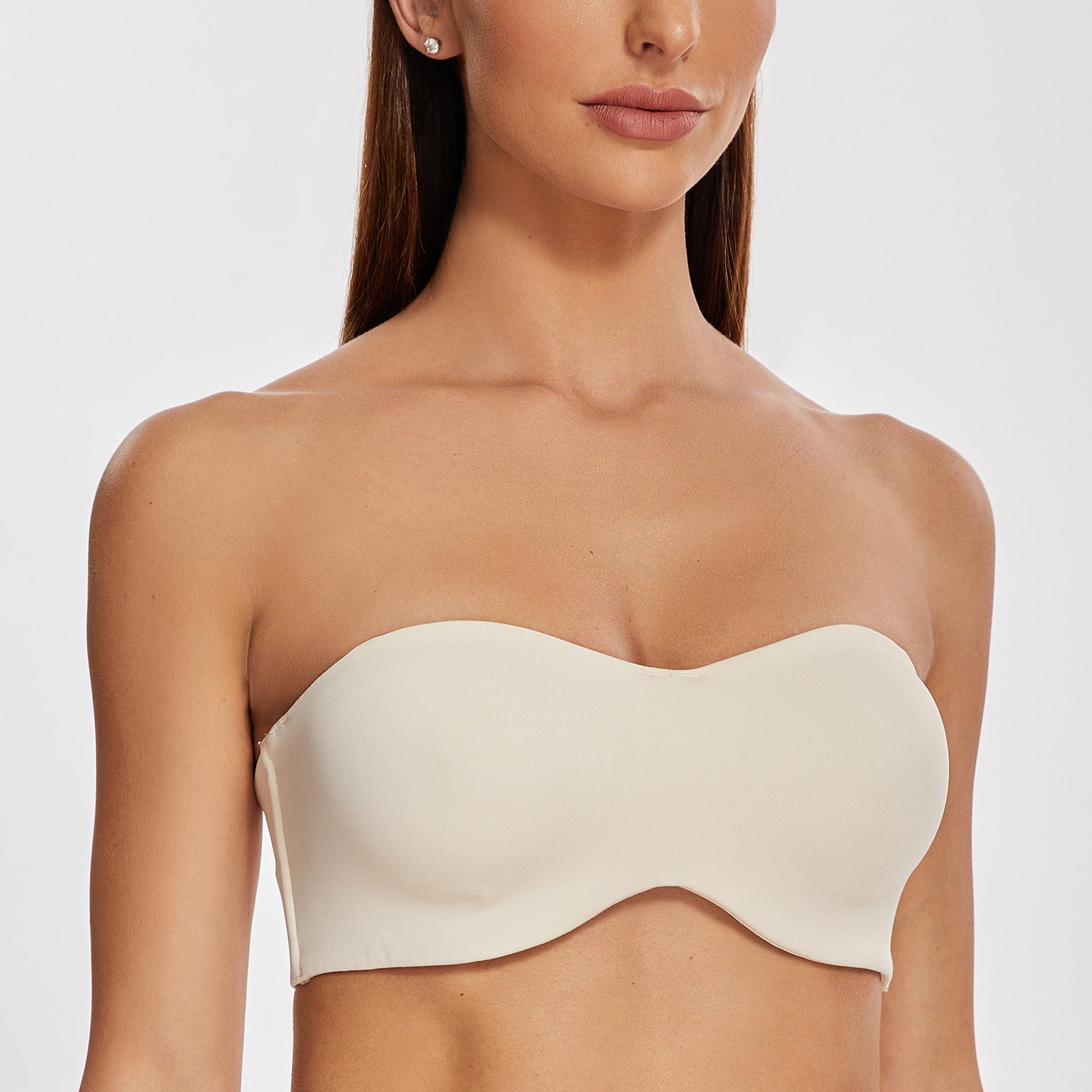 MELENECA Women's Strapless Bra for Large Bust Minimizer Unlined Bandeau with Underwire Sand Dollar