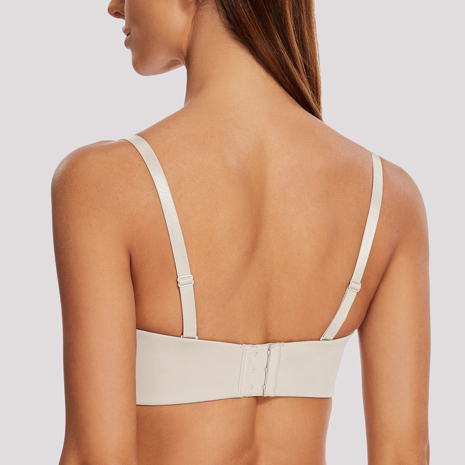 Designed with optional straps, the MELENECA Strapless Underwire Convertible Minimizer Bra is like owning three bras in one. Convertible straps let you switch it up from traditional placement to a crisscross silhouette, halter-style neckline or no straps at all. Ideal for full figured women, this minimizing style features seamless cups with side boning and underwire for added support. Best of all, non-slip silicone grip across the top edge of the bra keep this bra in place--with or without straps.