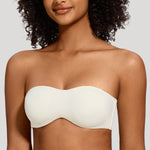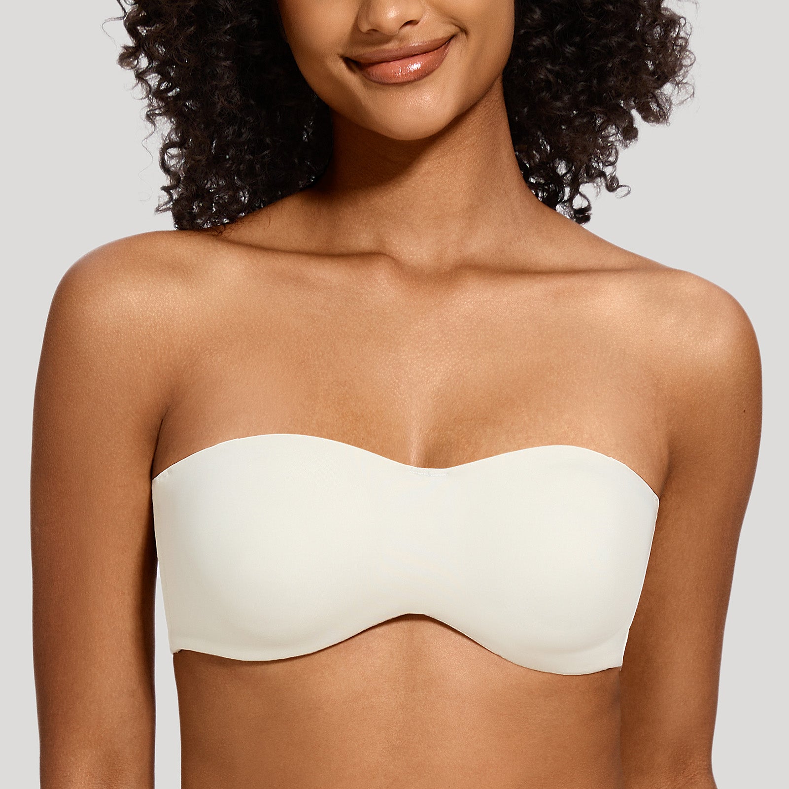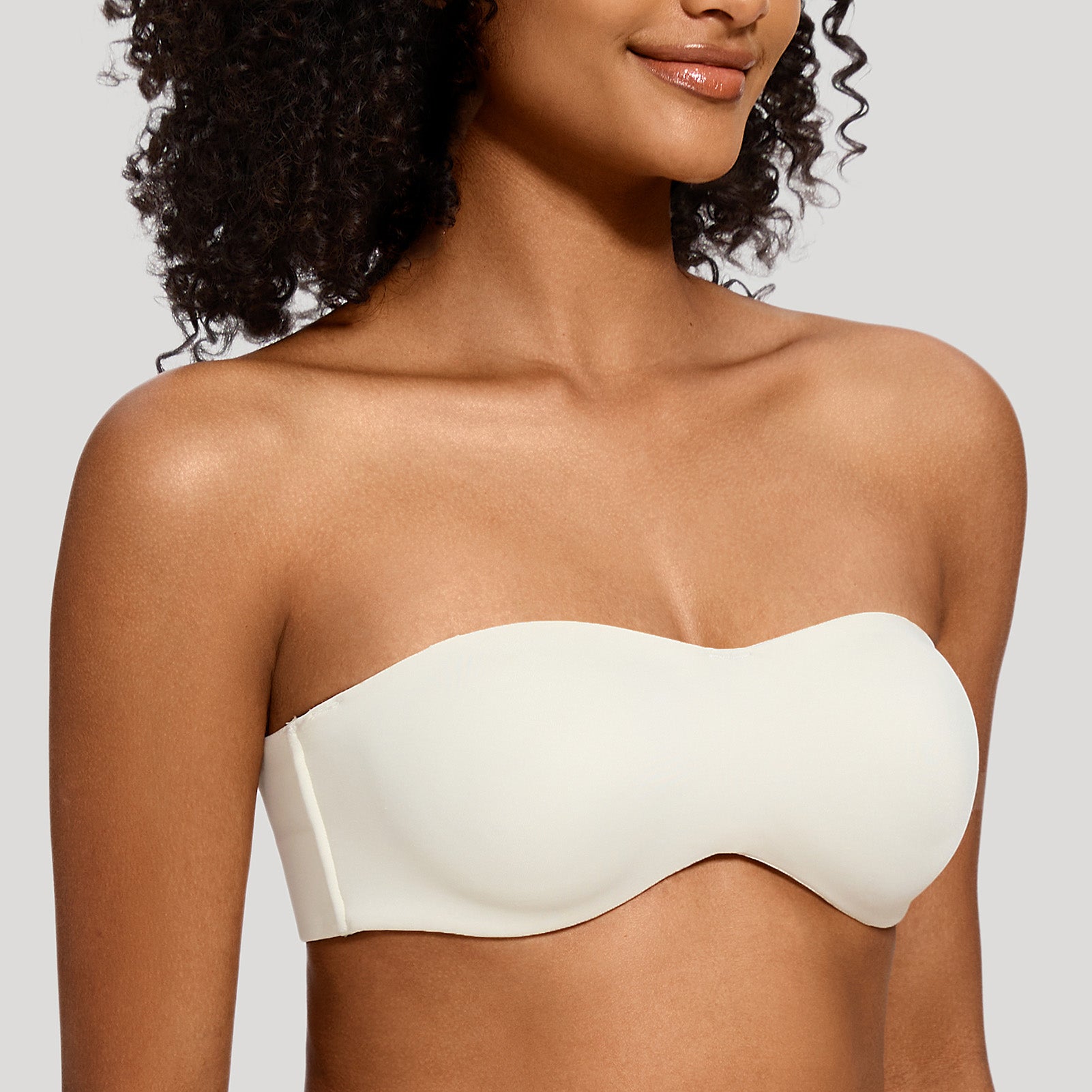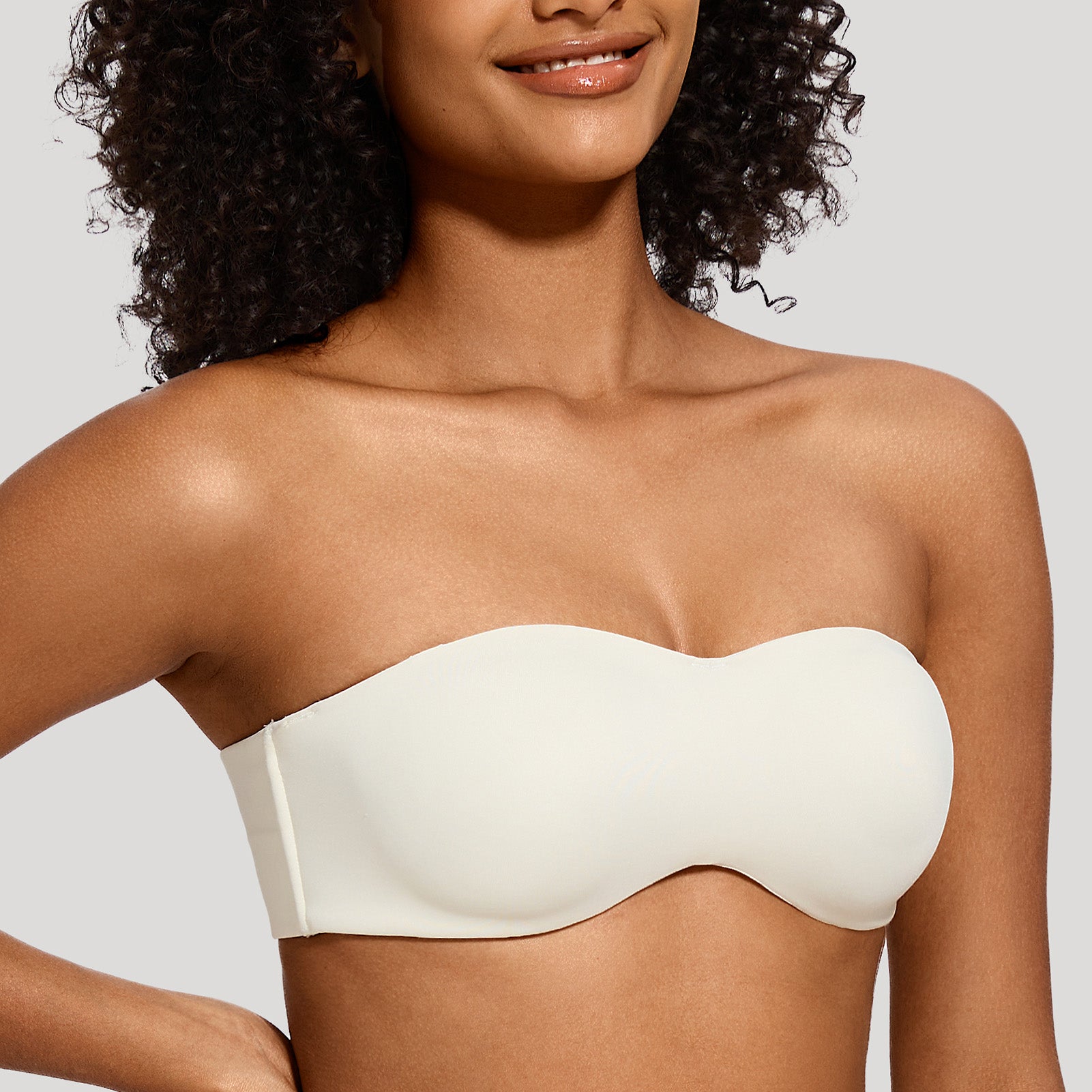 82% Polyamide,18% Elastane<br/>Seamless no padding cups minimize by compression and provide a smooth, invisible look under clothesWide smoothing band gives a invisible look under clothes.Convertible straps may be worn strapless, halter, crossback and classic style.Silicone gripper elastic on inside of cup sides and top edge of the back prevents slippageMinimizes bustline up to 1.5".Side seam boning for additional support.Perfect for bridal and special occasion.Hang to dry,Do not iron,Do not dry clean.