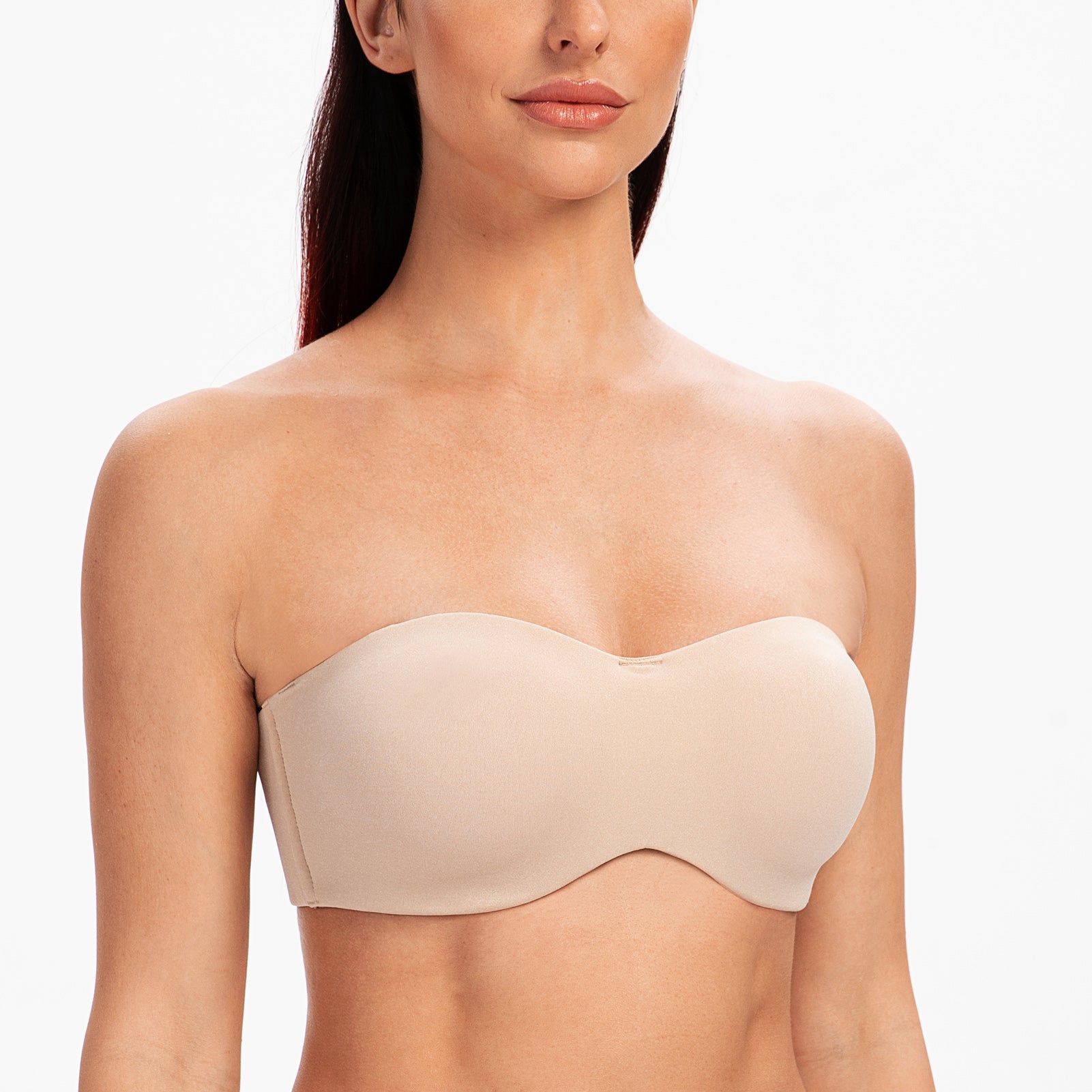 50% Polyamide,38%Polyester,12% Elastane<br/>Adjustable and invisible clear bra strap is removableNo-slip silicone inside prevents slippageNo padding cups with breathable fabric liningUnderwire bra offer perfect support for large bustsMinimizer bra with smooth fabric for a less bulky shape