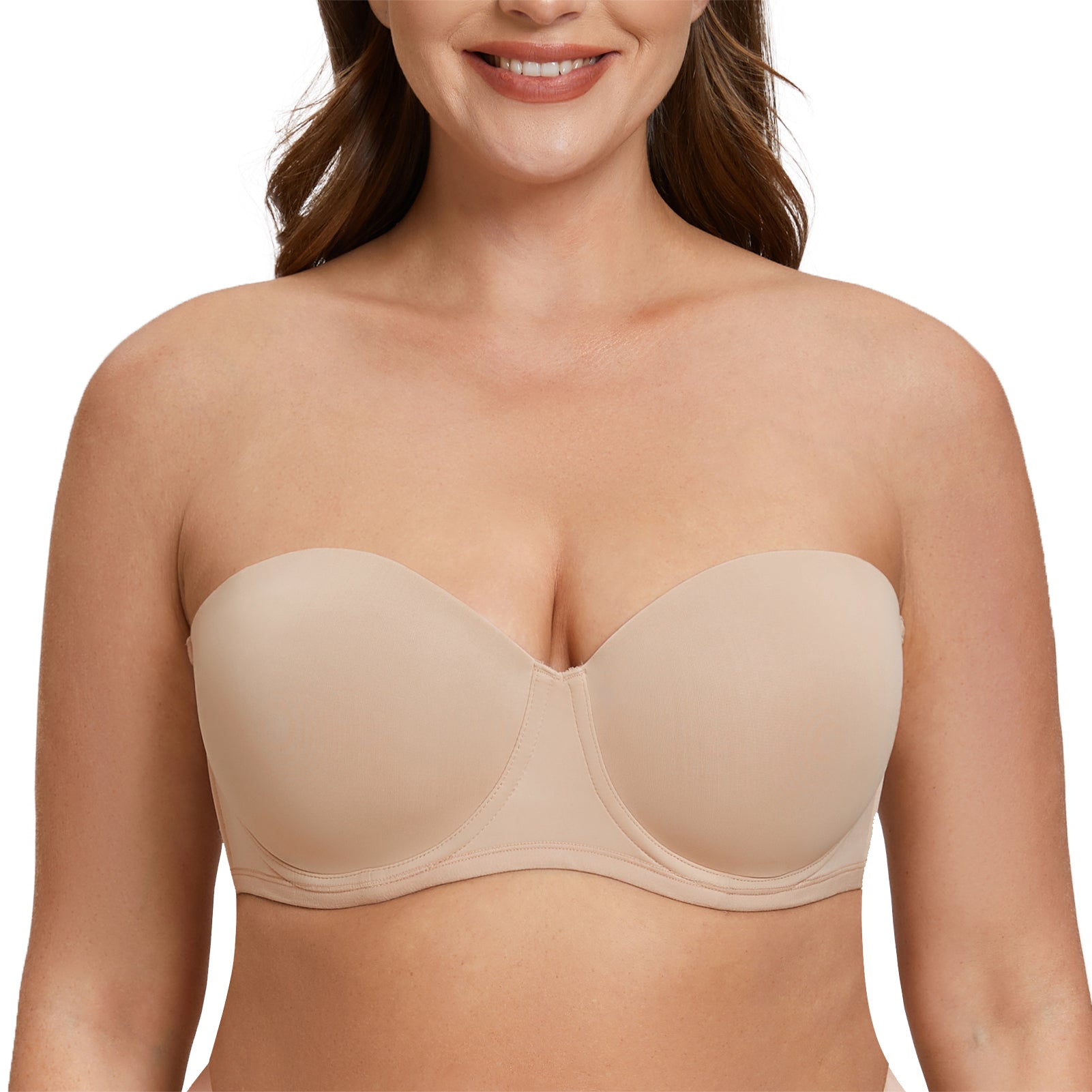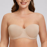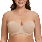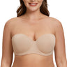 MELENECA Women's Strapless Bra for Large Bust Back Smoothing Plus Size with Underwire Beige