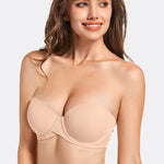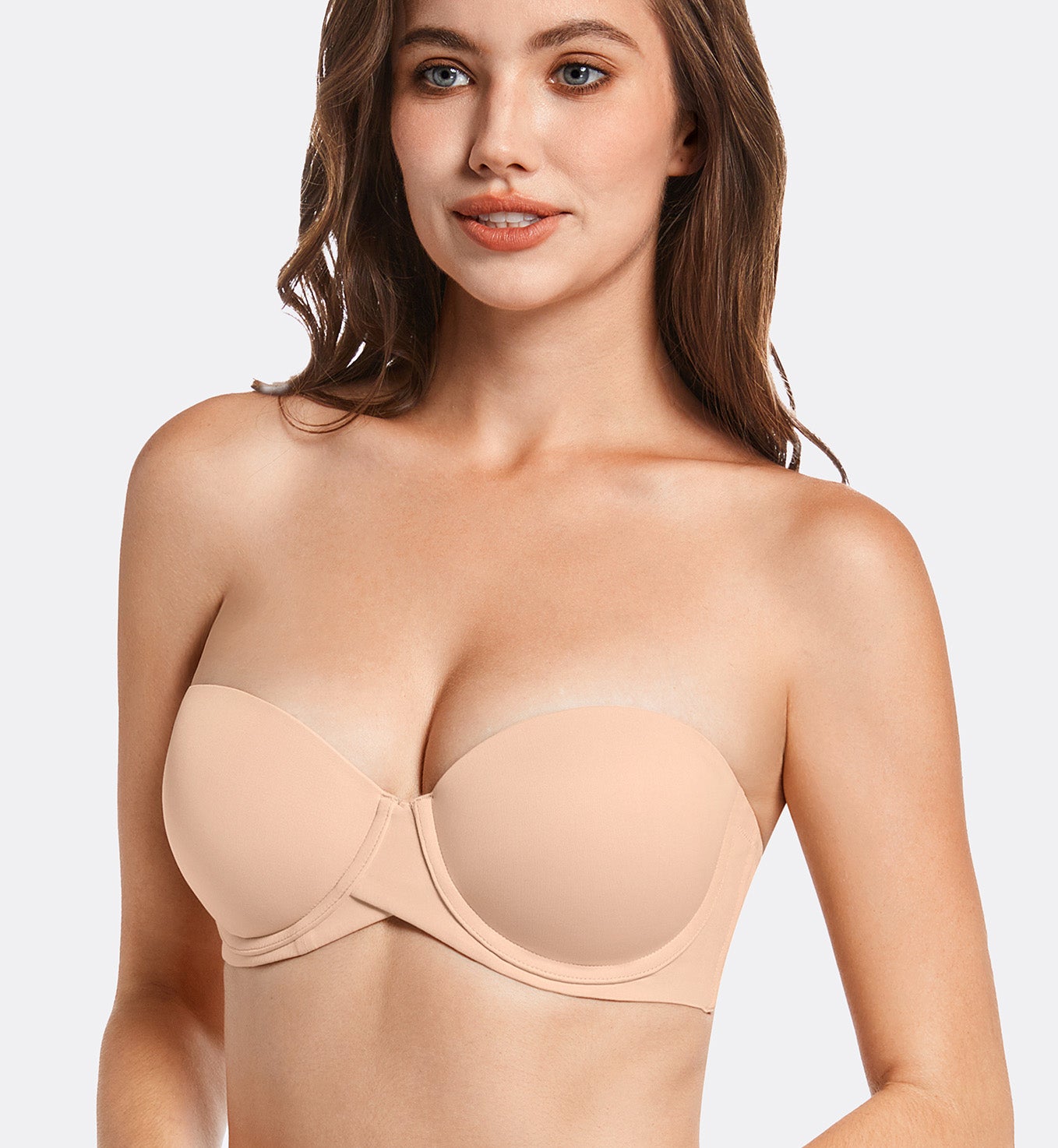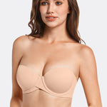 86% Polyamide,14% Spandex<br/>Contour/t-shirt underwire cup has heavy graduated, crescent-shaped soft push-up padding for lift.Silicone gripper elastic at top and bottom of sides and back for no-slip hold.Sweetheart-neckline makes it easy to wear low-cut tops and dresses.Convertible, wide-set, clear straps adjust in the back with plastic hardware.Wide Stay-Put elastic band sewn onto interior of middle in the back for a secure fit.